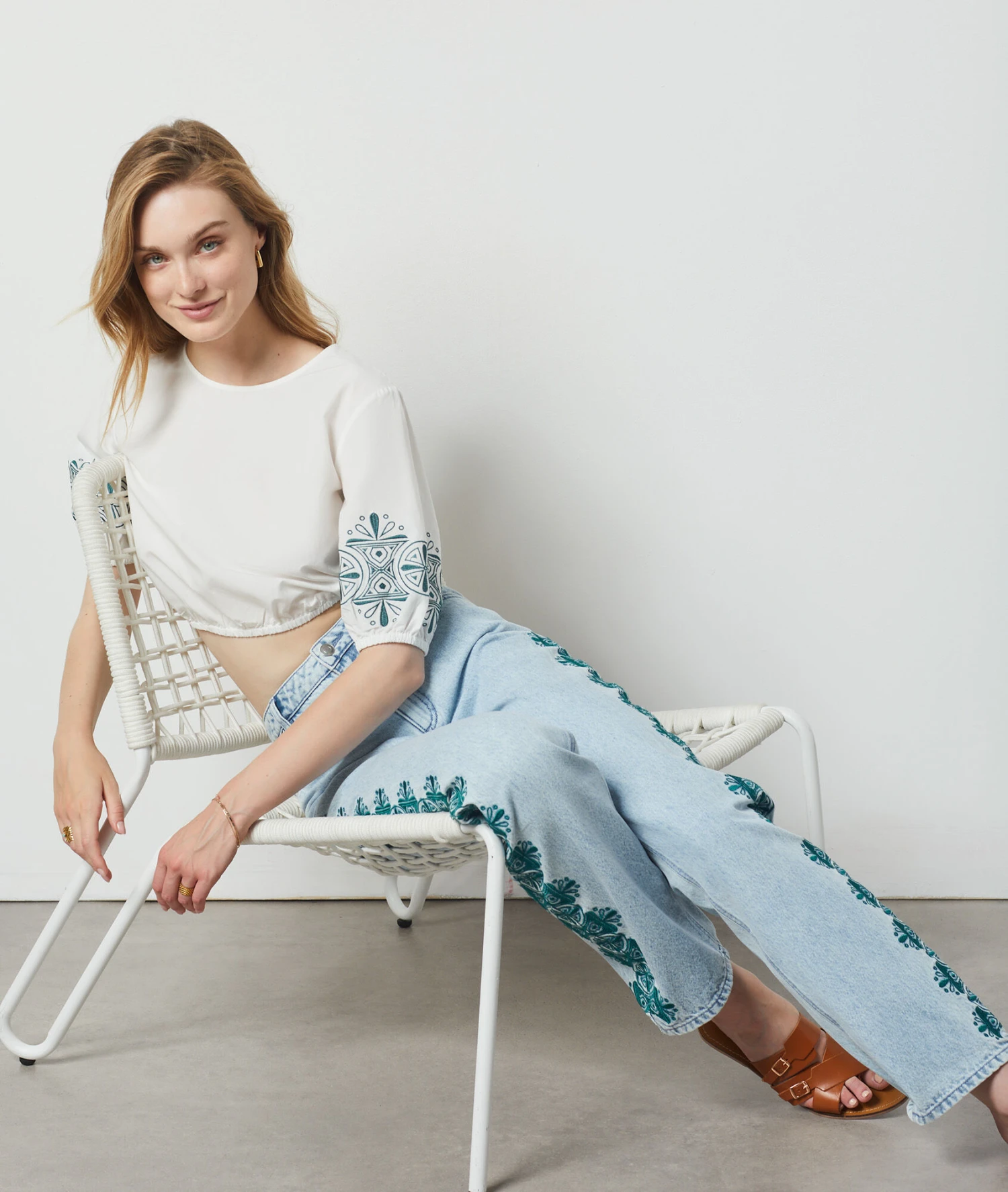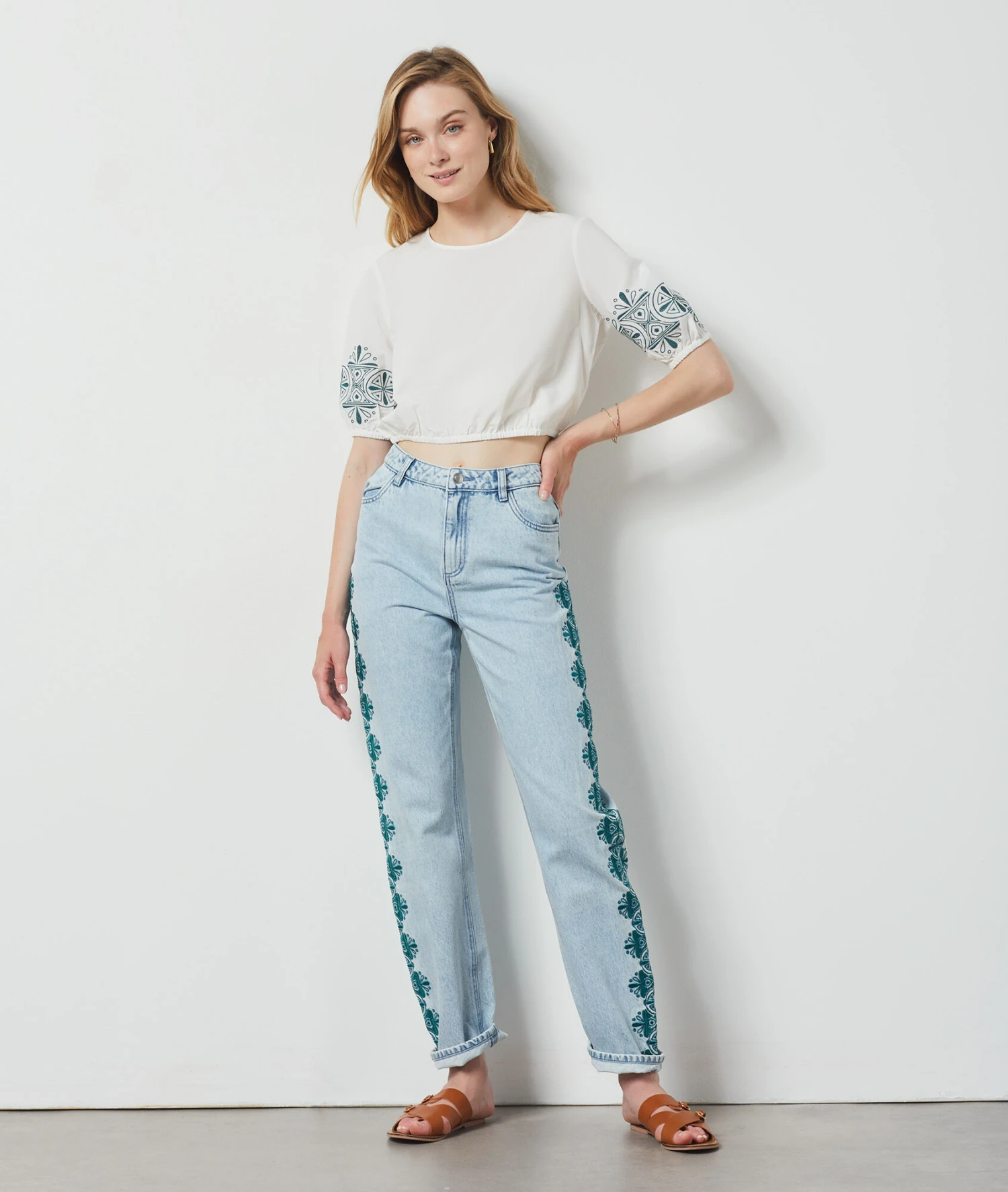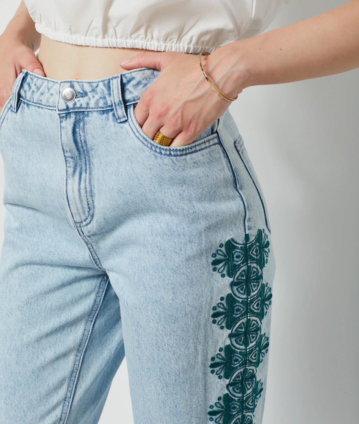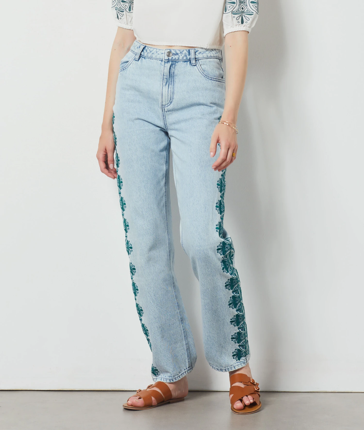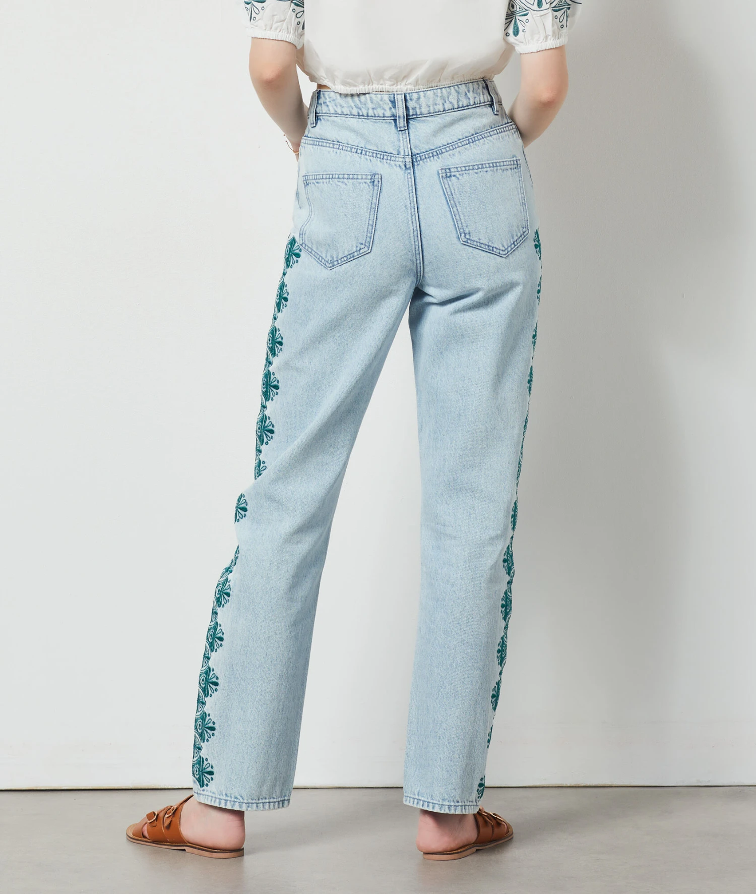Jean Détails Brodés BLEU CIEL