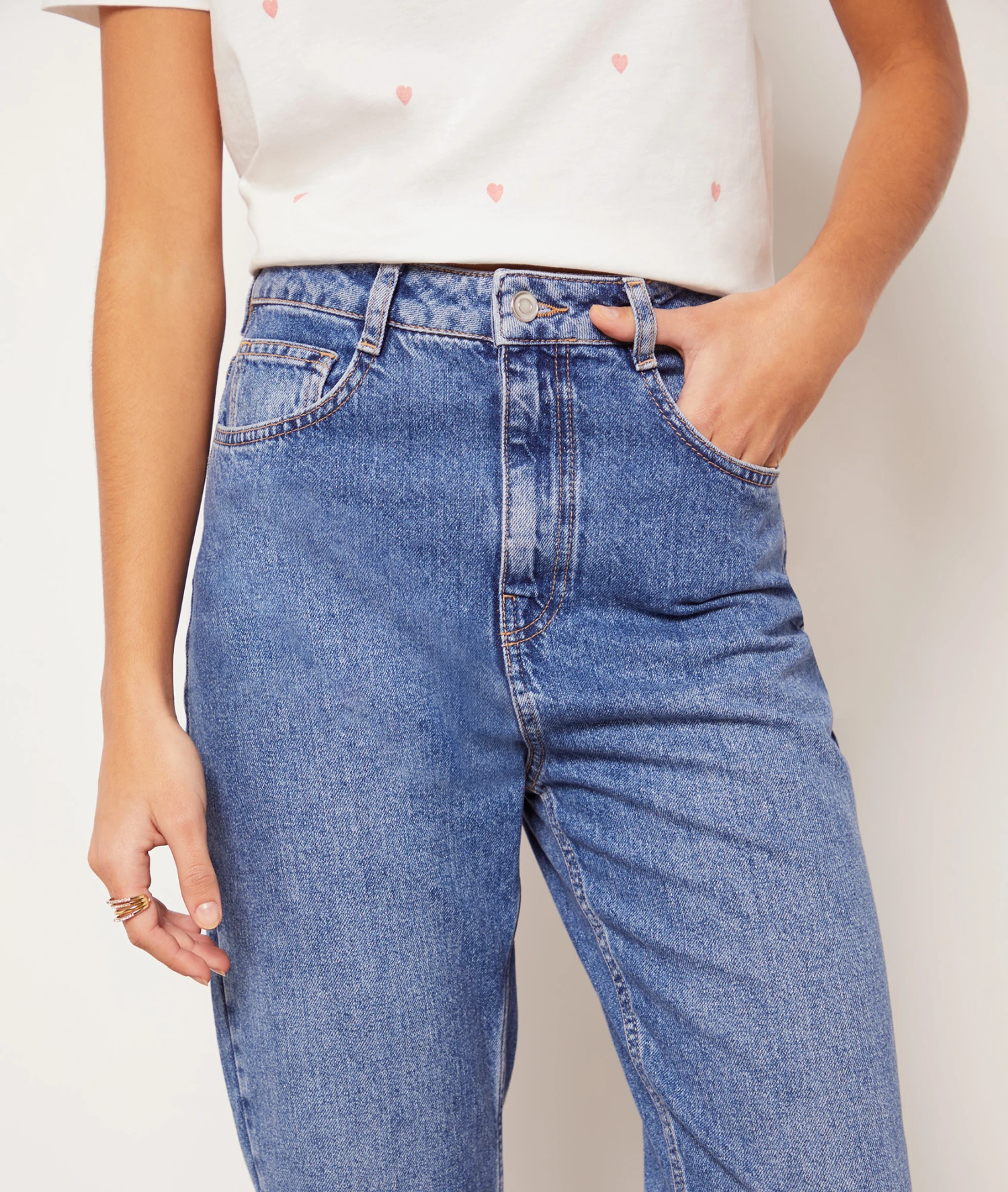 Jeans Im Mom-Schnitt, Hohe Taille, 100 % Baumwolle BLAU
