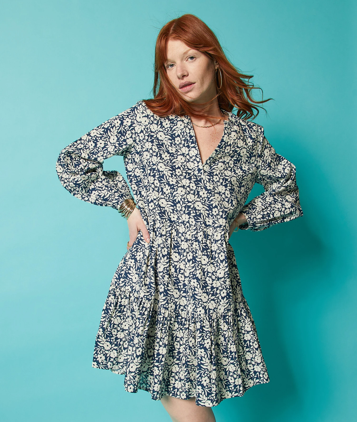 Kleid Mit Print, 100 % Baumwolle MARINEBLAU