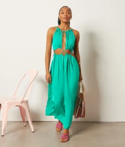 Langes, Asymmetrisches Kleid SMARAGDGRÜN