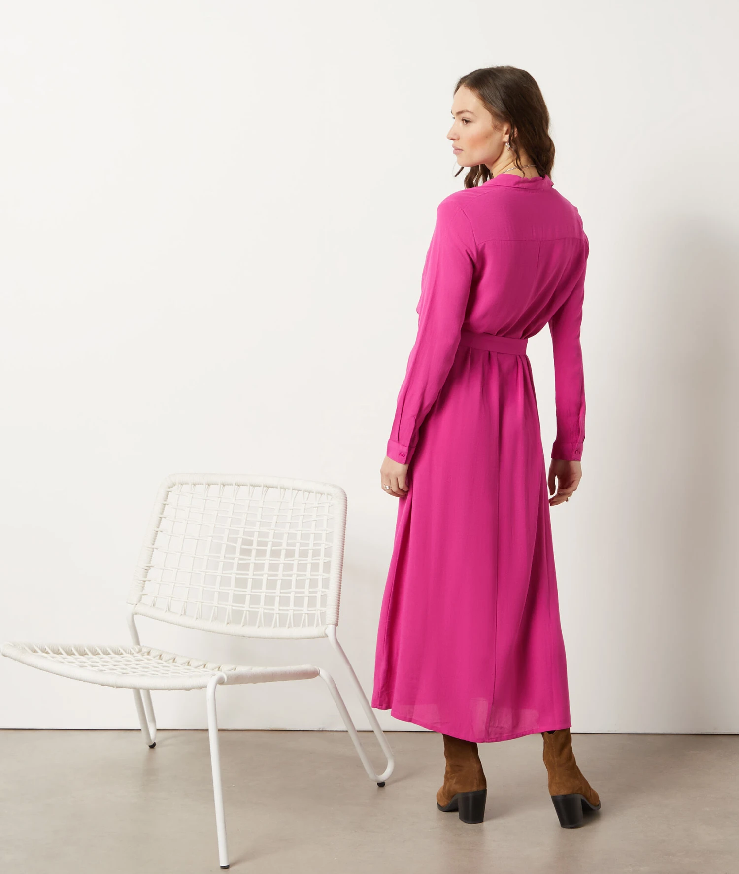 Langes Kleid Mit Bindegürtel FUCHSIA