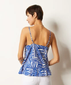 Caraco Mit Schmalen TrÀgern Und Print, 100 % Baumwolle BLAU