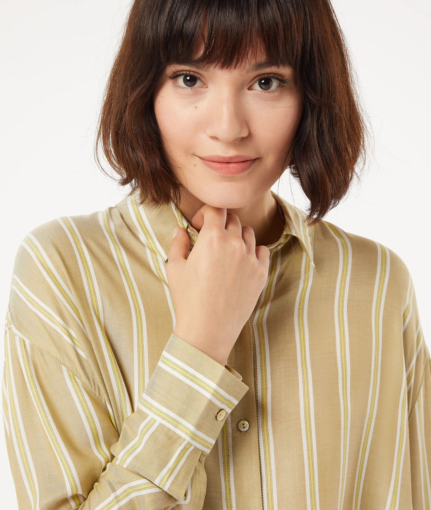 Geknöpft, leicht und mit einem ultratrendigen, hübschen Streifen-Print: ein Pyjamahemd, das Sie mit der passenden Hose zu einem sehr stylischen Total-Look kombinieren können.