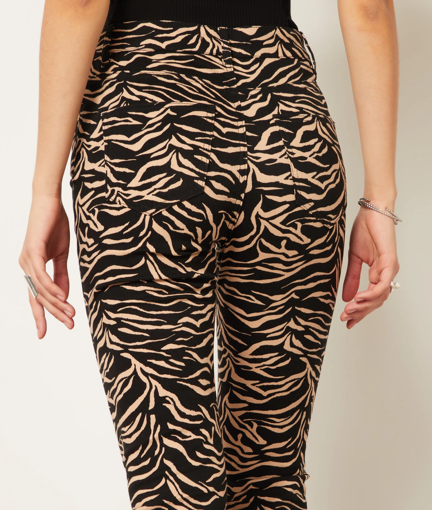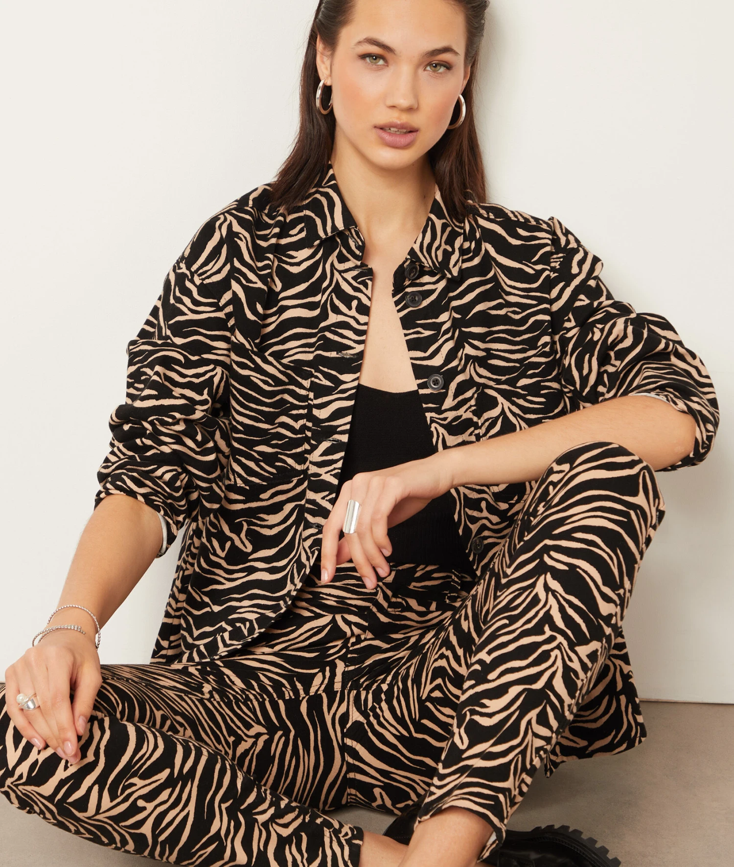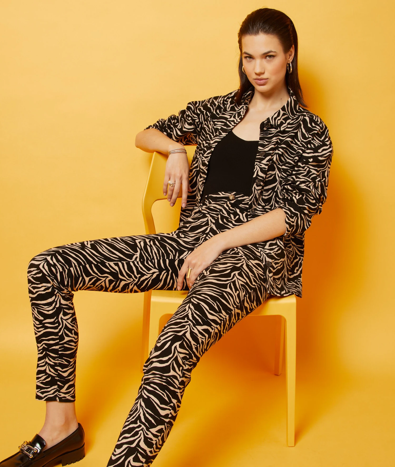 Die immer aktuelle Jeans, neu interpretiert mit einem völlig kontrastierenden wilden Print: der modische Trumpf für Ihren Look.