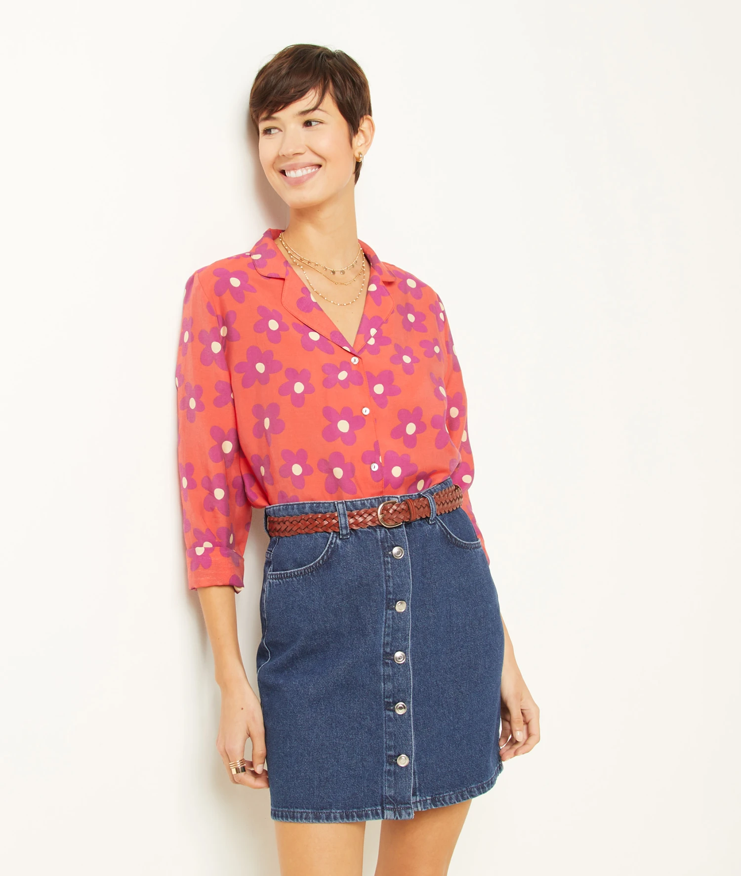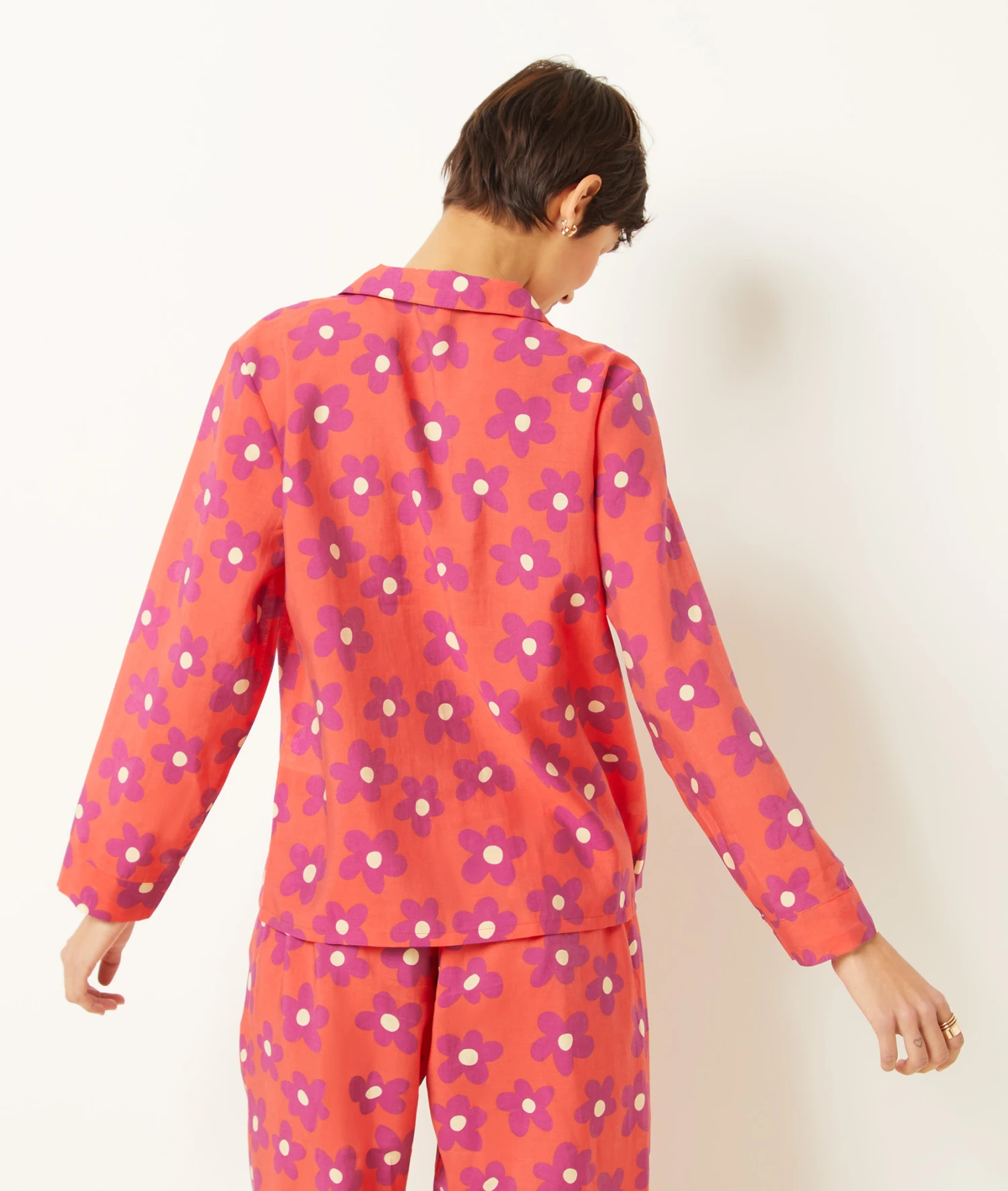 Seidig Schimmerndes Pyjamahemd Mit Print ORANGE