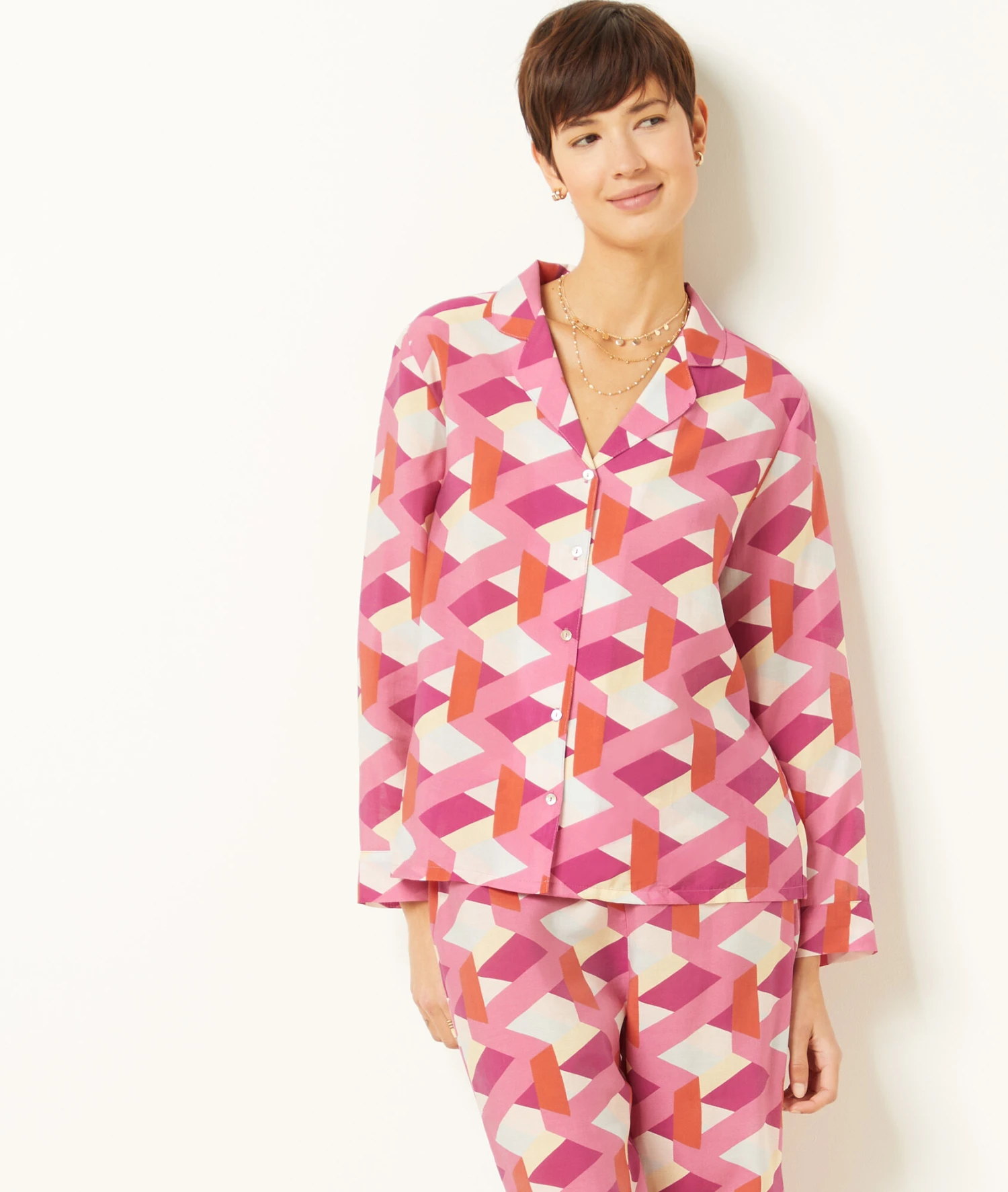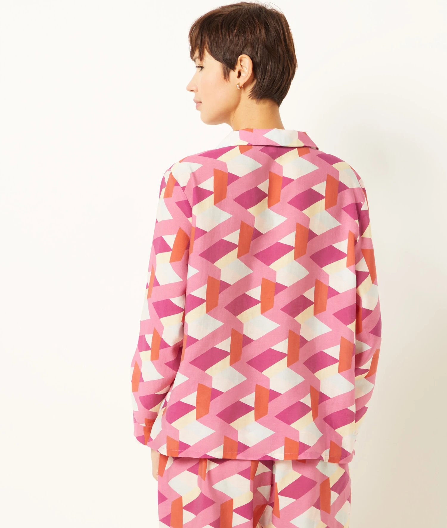 Seidig Schimmerndes Pyjamahemd Mit Print TERRACOTTA