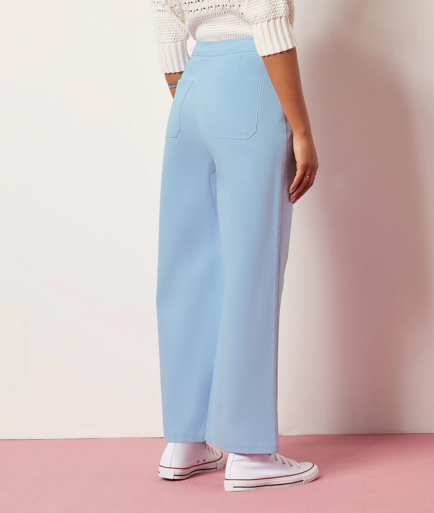 Swan Weit Geschnittene Hose, 100 % Baumwolle HIMMELBLAU