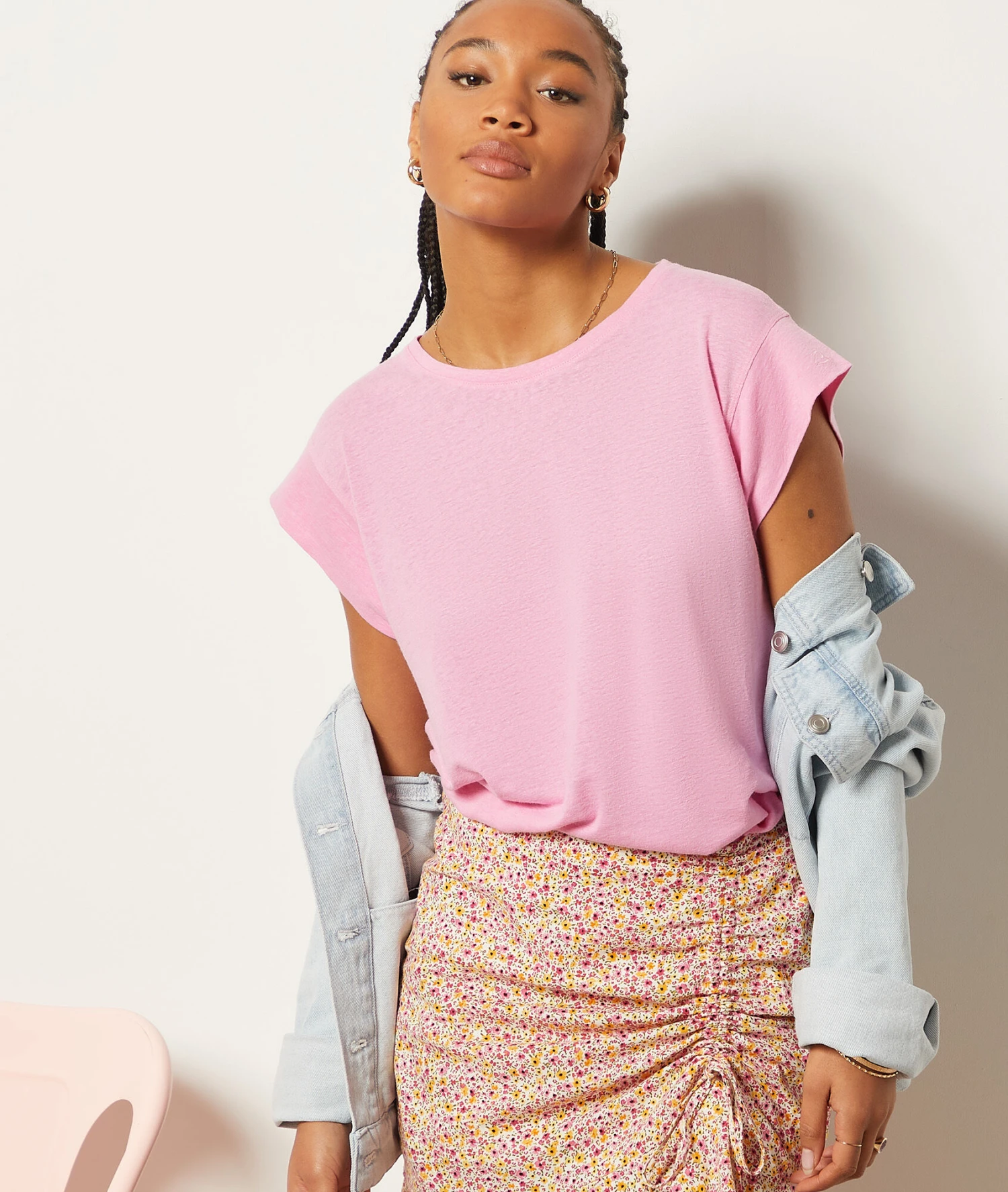 T-Shirt Aus Leinenmischgewebe HELLROSA