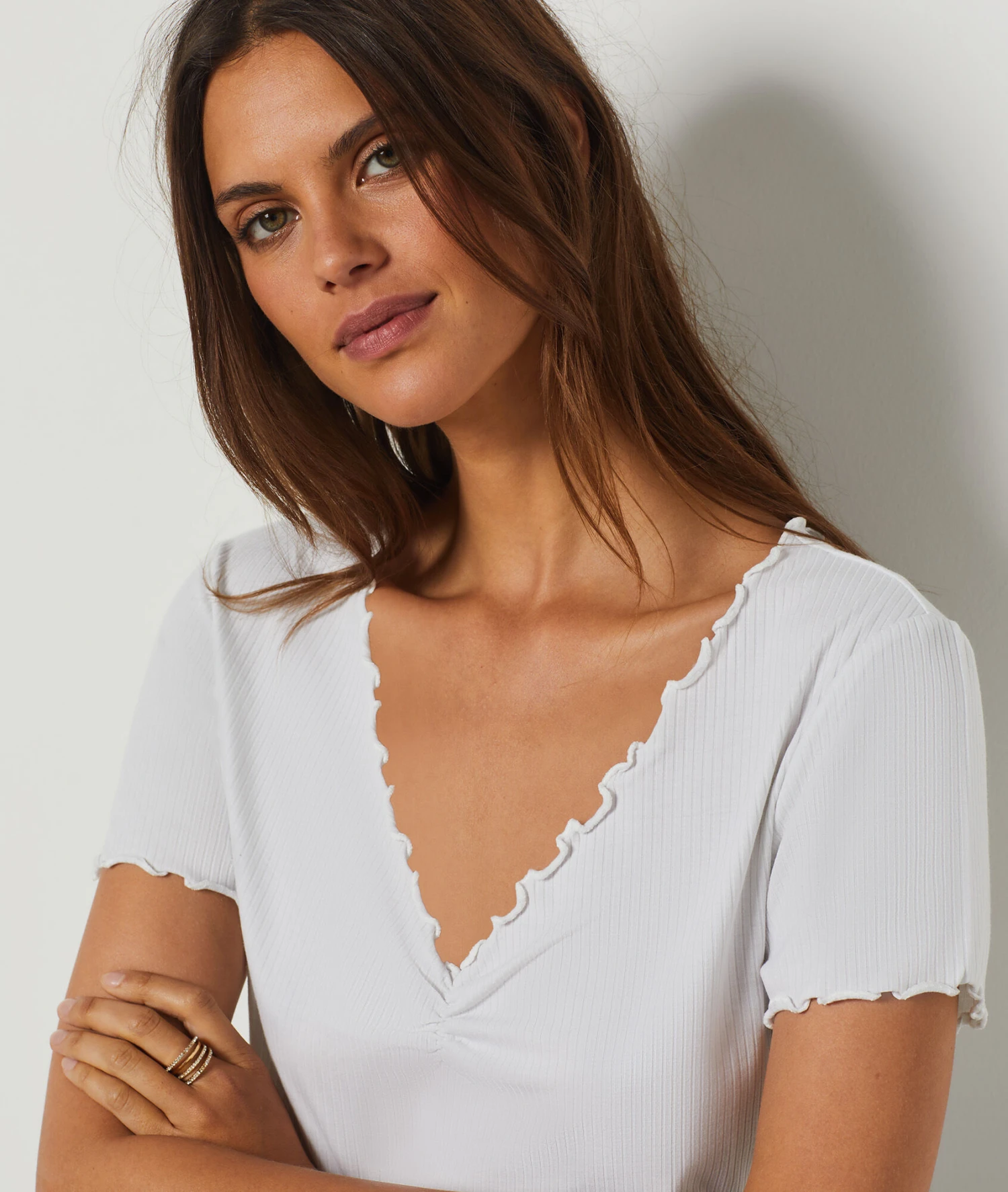 T-shirt Manches Courtes Col V ECRU