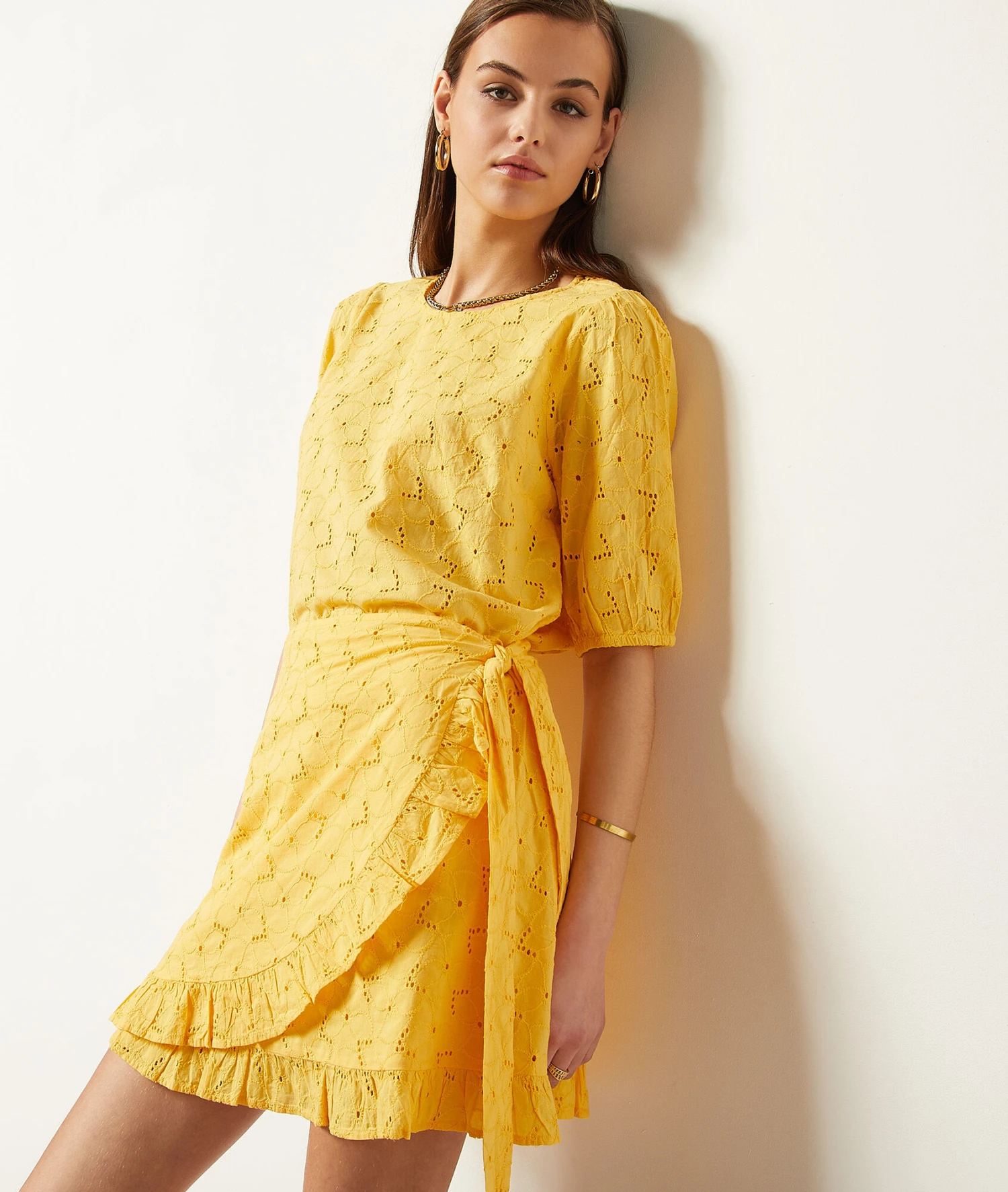 T-Shirt Mit Kurzen Ärmeln Mit Stickereien SONNENGELB