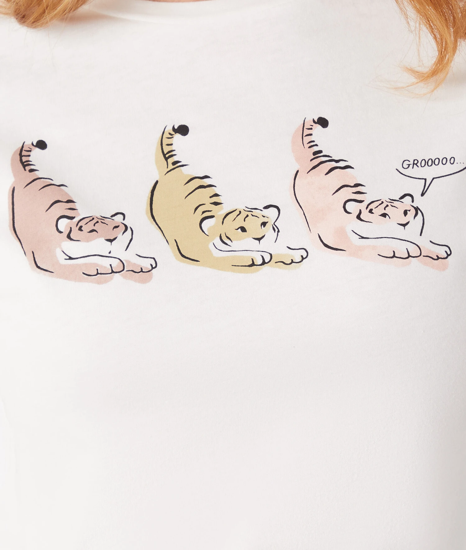 Dieses T-Shirt aus Bio-Baumwolle mit kurzen Ärmeln und zauberhaftem Print ist einfach unwiderstehlich. Am Tag oder in der Nacht mit einem Unterteil Ihrer Wahl zu tragen – für absoluten Komfort im Alltag.