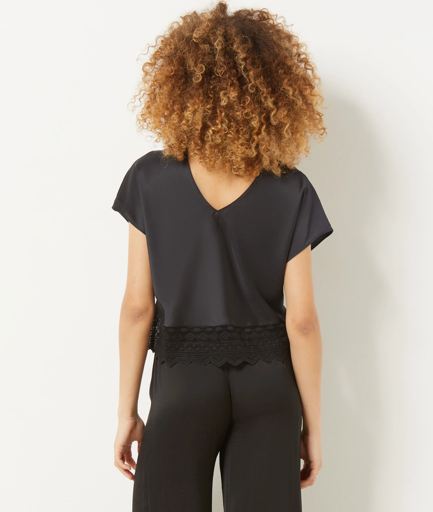 T-shirt Satiné Détails Dentelles NOIR