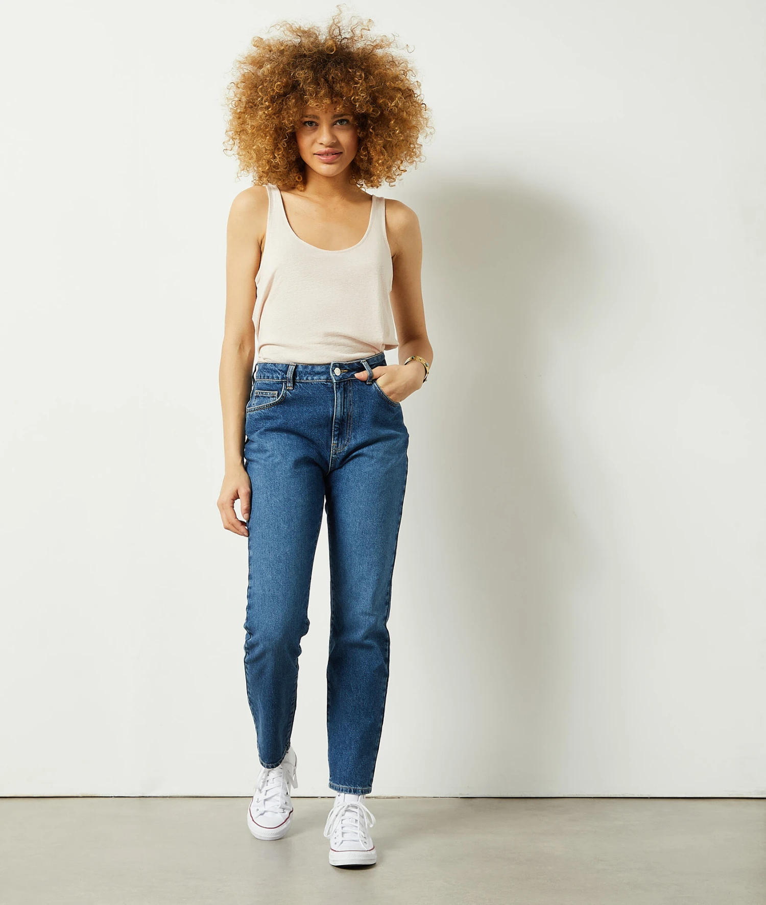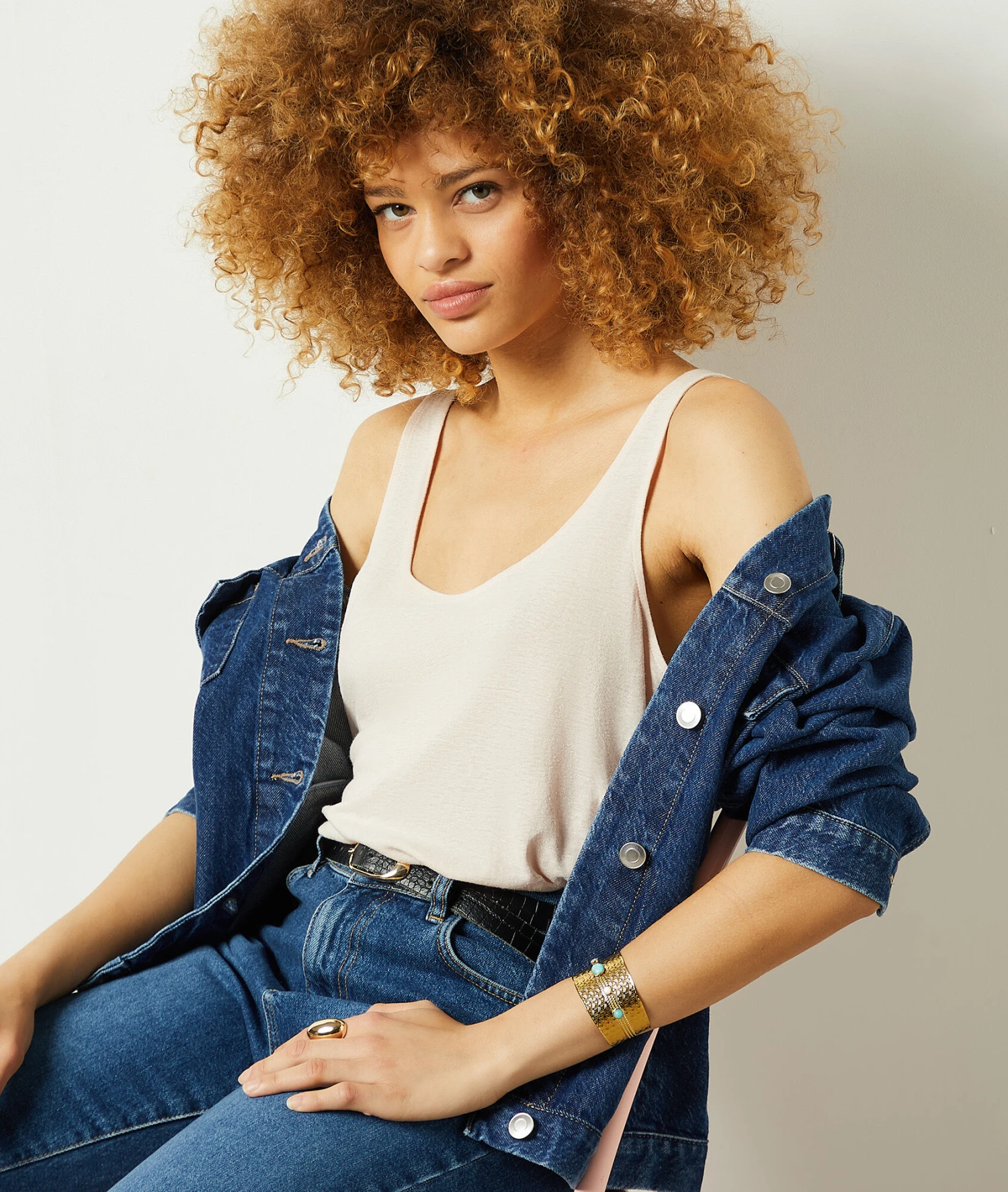 Top Aus Leinenmischgewebe BEIGE