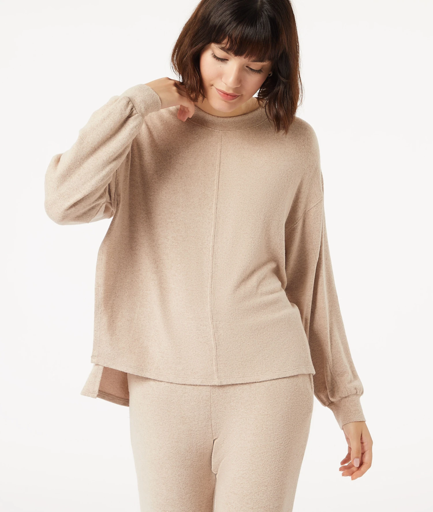 Top Mit Langen Ärmeln TAUPE